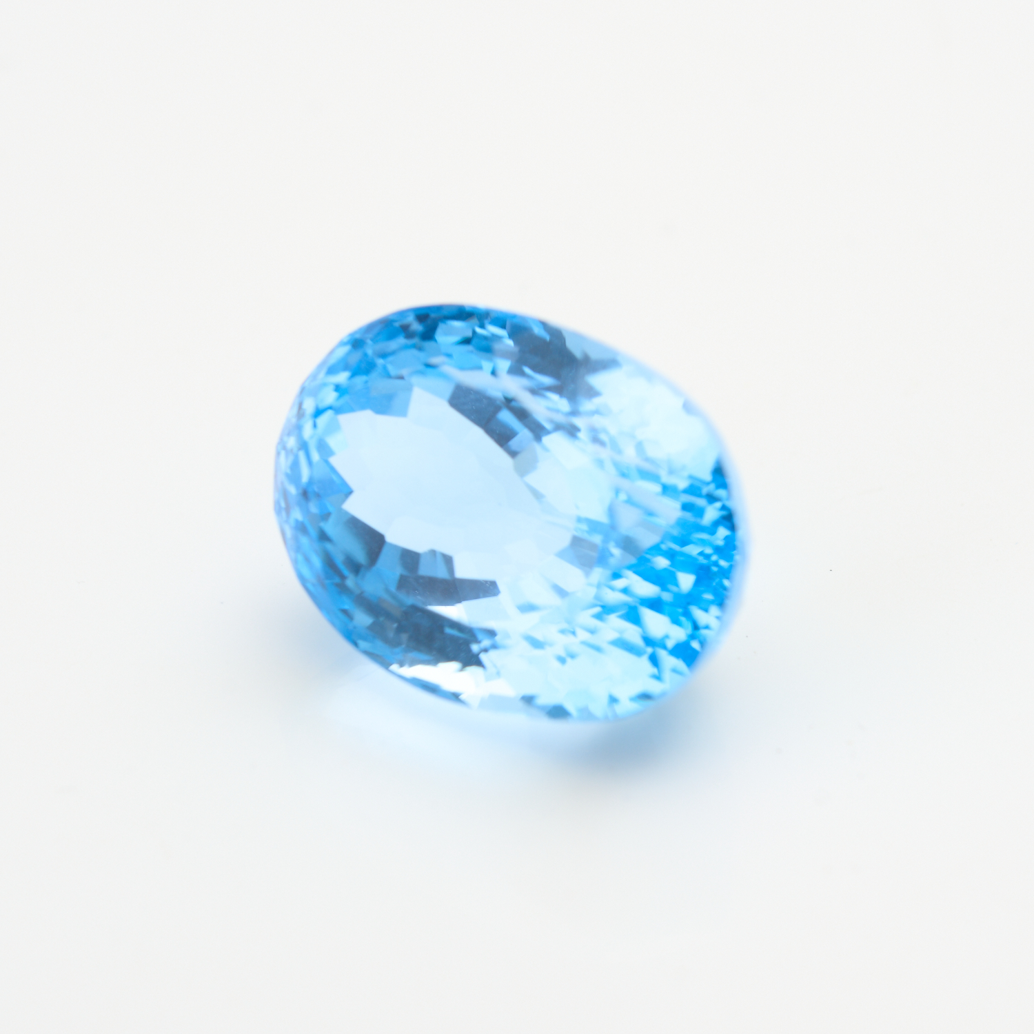 AN OVAL BRILLIANT CUT BLUE RADIATED LOOSE TOPAZ WEIGHING APPROXIMATELY 25.35CTS, VS