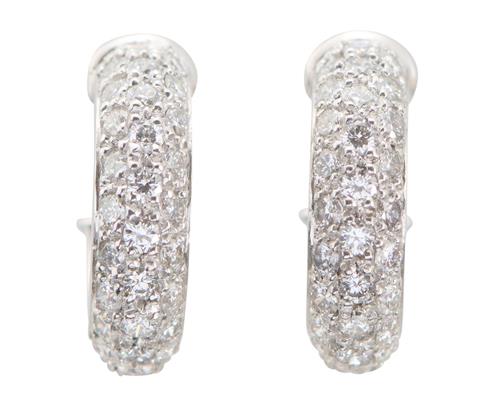 Each round hoop earring pavé-set with round brilliant-cut diamonds together weighing 0.50cts, signed, accompanied by a fitted Cartier box.