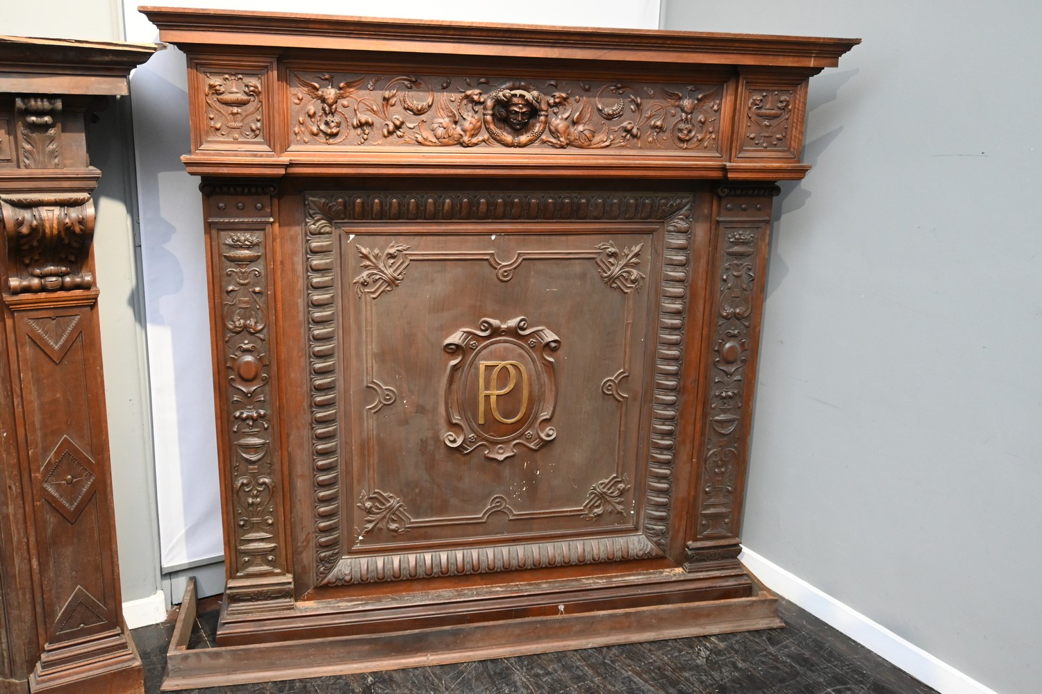 A SPECTACULAR 19TH CENTURY FRENCH FIRE PLACE CANOPY (A/F) (185H x 187W x 50D CM) (PLEASE NOTE THIS HEAVY ITEM MUST BE REMOVED BY CARRIERS AT THE CUSTOMER'S EXPENSE. LEONARD JOEL STAFF CANNOT ASSIST CARRYING THIS ITEM) (X-LARGE ITEM)