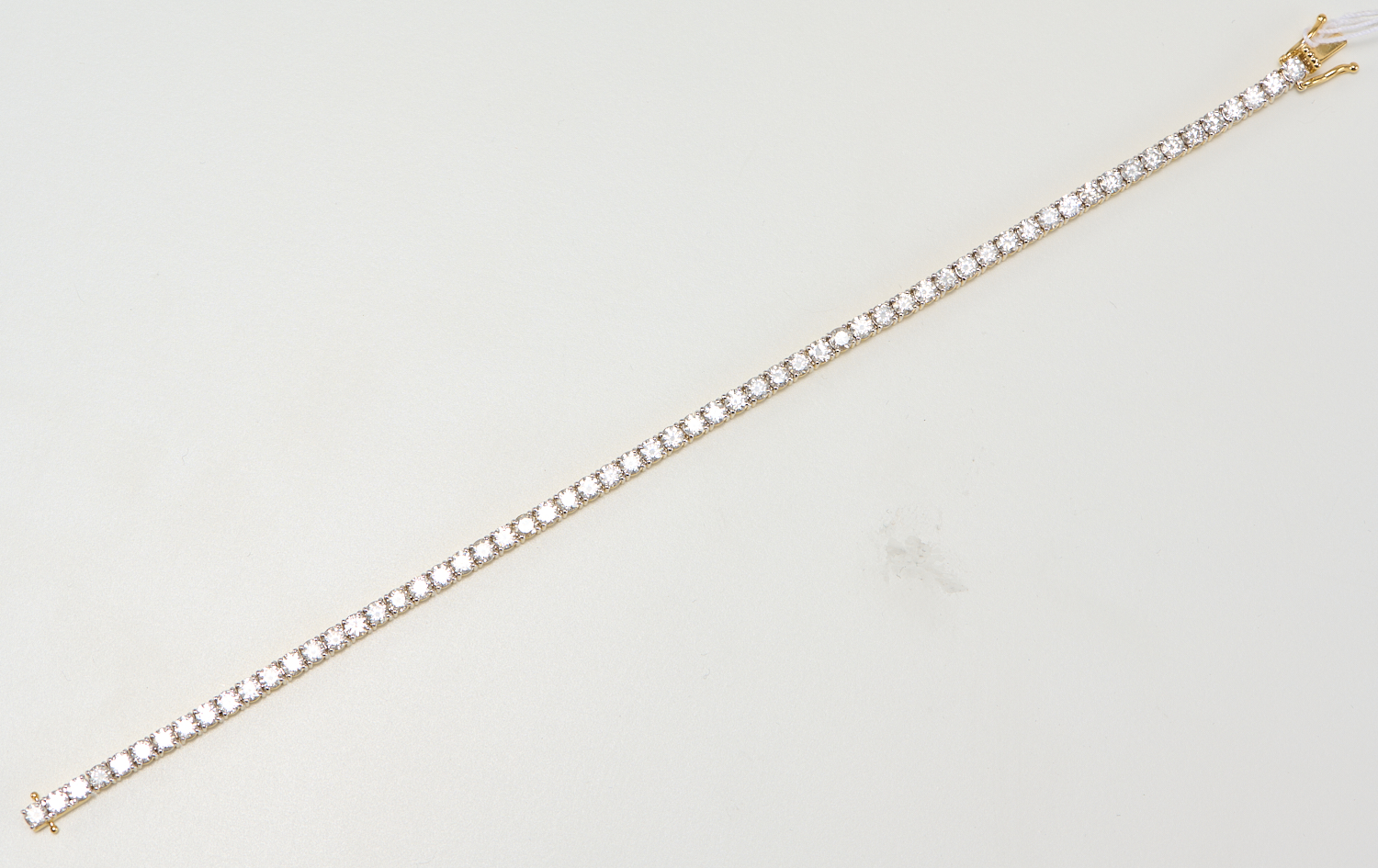 A DIAMOND LINE BRACELET IN 18CT GOLD, DESIGNED AS A LINE OF SIXTY-TWO CLAW-SET ROUND BRILLIANT-CUT DIAMONDS TOTALLING 5.01 CARATS, LENGTH 180MM