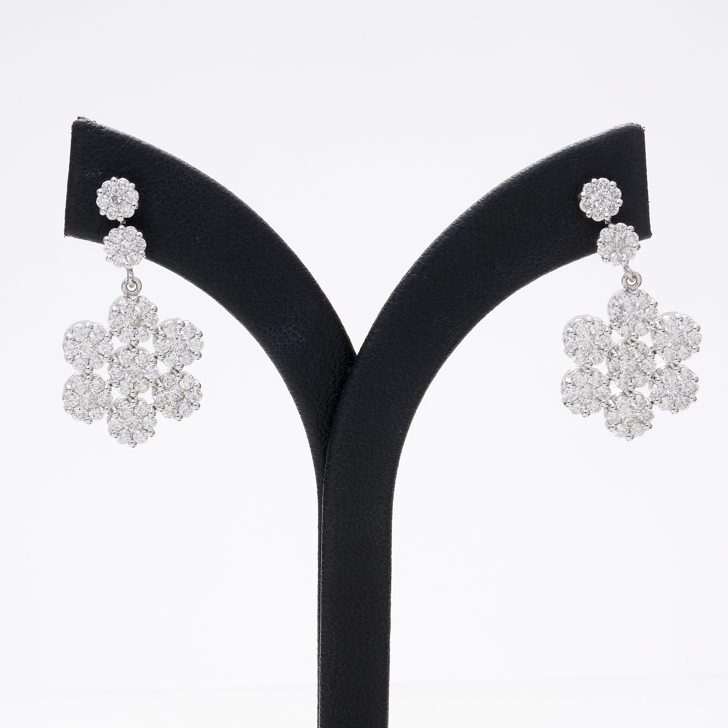 A PAIR OF DIAMOND EARRINGS IN 14CT WHITE GOLD, THE DIAMONDS TOTALLING 4.09CT, TO POST AND BUTTERFLY FITTINGS