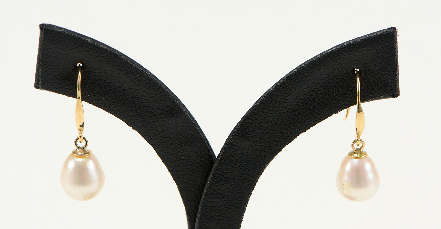 A PAIR OF CULTURED PEARL EARRINGS IN 9CT GOLD, THE PEARLS MEASURING 7.8MM