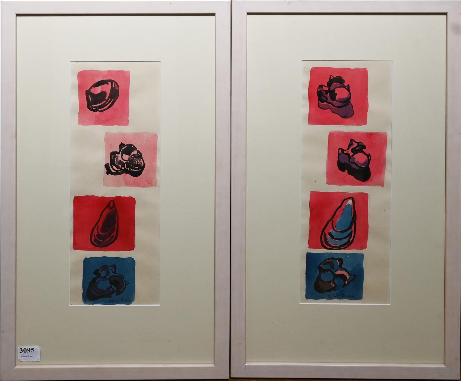 SYBIL CRAIG (PAIR OF WORKS), UNTITLED (SHELL STUDIES), INK AND GOAUCHE ON PAPER, 32.5 X 11CM (EACH)