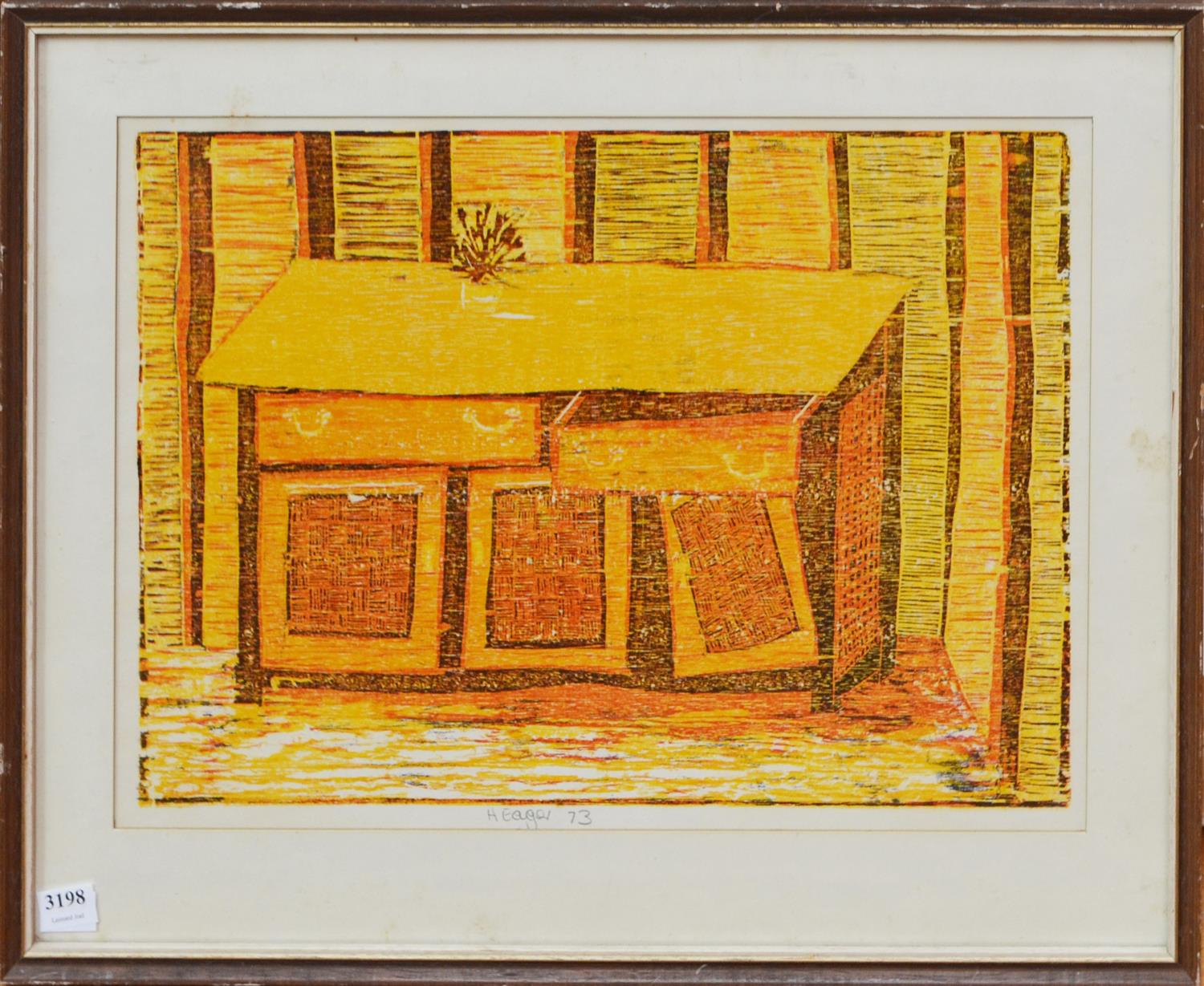 HELEN EAGER, UNTITLED (HOUSE), LINOCUT 1973, 29 X 41CM