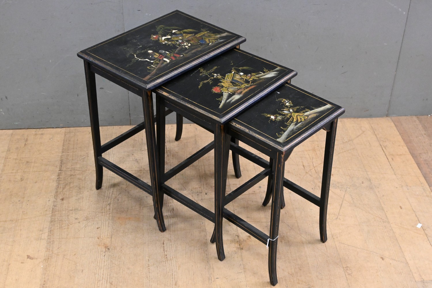 A NEST OF THREE CHINOISERIE TABLES - CIRCA 1920 (57H x 45W x 33D CM) (LEONARD JOEL DELIVERY SIZE: MEDIUM)