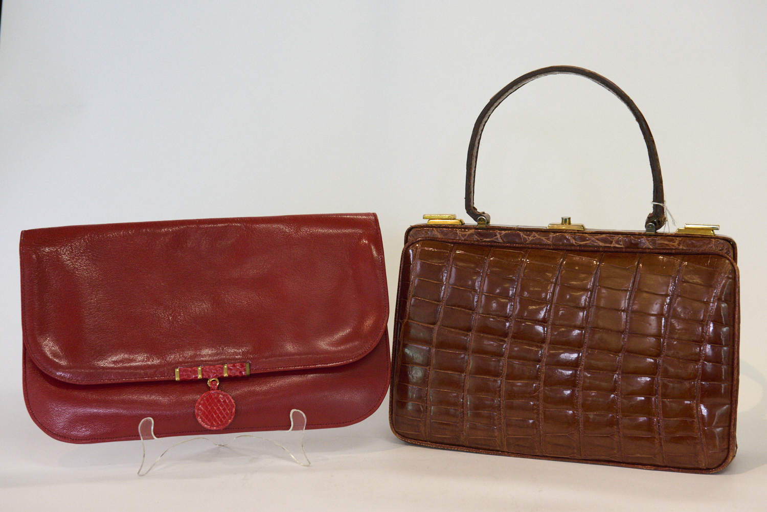 A VINTAGE CROCODILE HANDBAG, MADE IN FRANCE WITH A VINTAGE COMTESSE CLUTCH, MADE IN GERMANY, BOXED, LEONARD JOEL LOCAL DELIVERY SIZE: SMALL