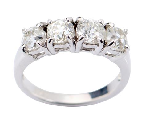 The diamonds are bright and lively and range approximately J-K colour and VS-SI clarity as gauged and graded in the mount