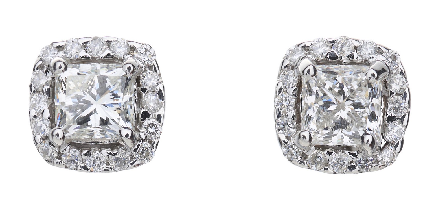 PAIR OF 18CT WHITE GOLD AND DIAMOND EARRINGS Accompanied by GSL Diamond Grading Report numbered AA63445/4 stating colour F, clarity...