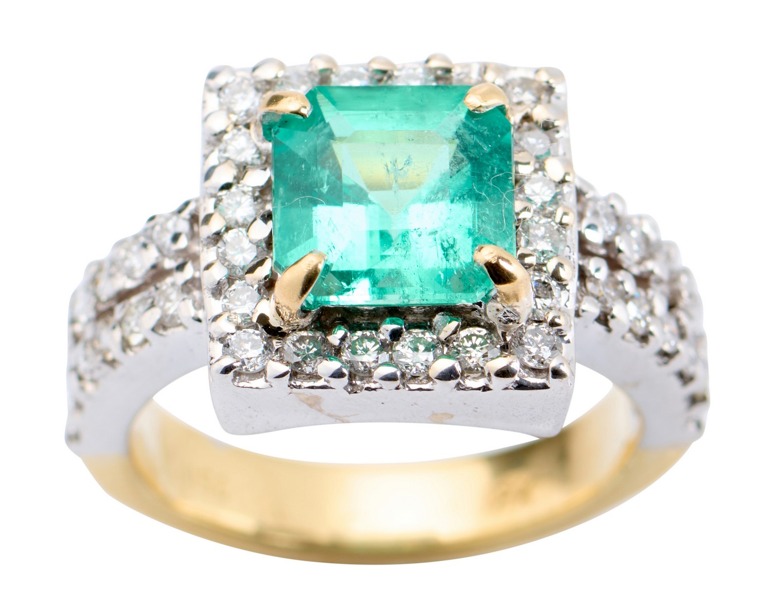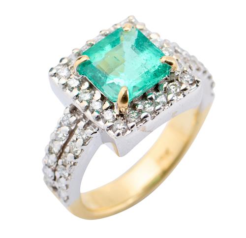 PLATINUM, COLOMBIAN EMERALD AND DIAMOND RING Accompanied by a Gübelin Gemstone Report numbered 12075278 stating origin Colombia.