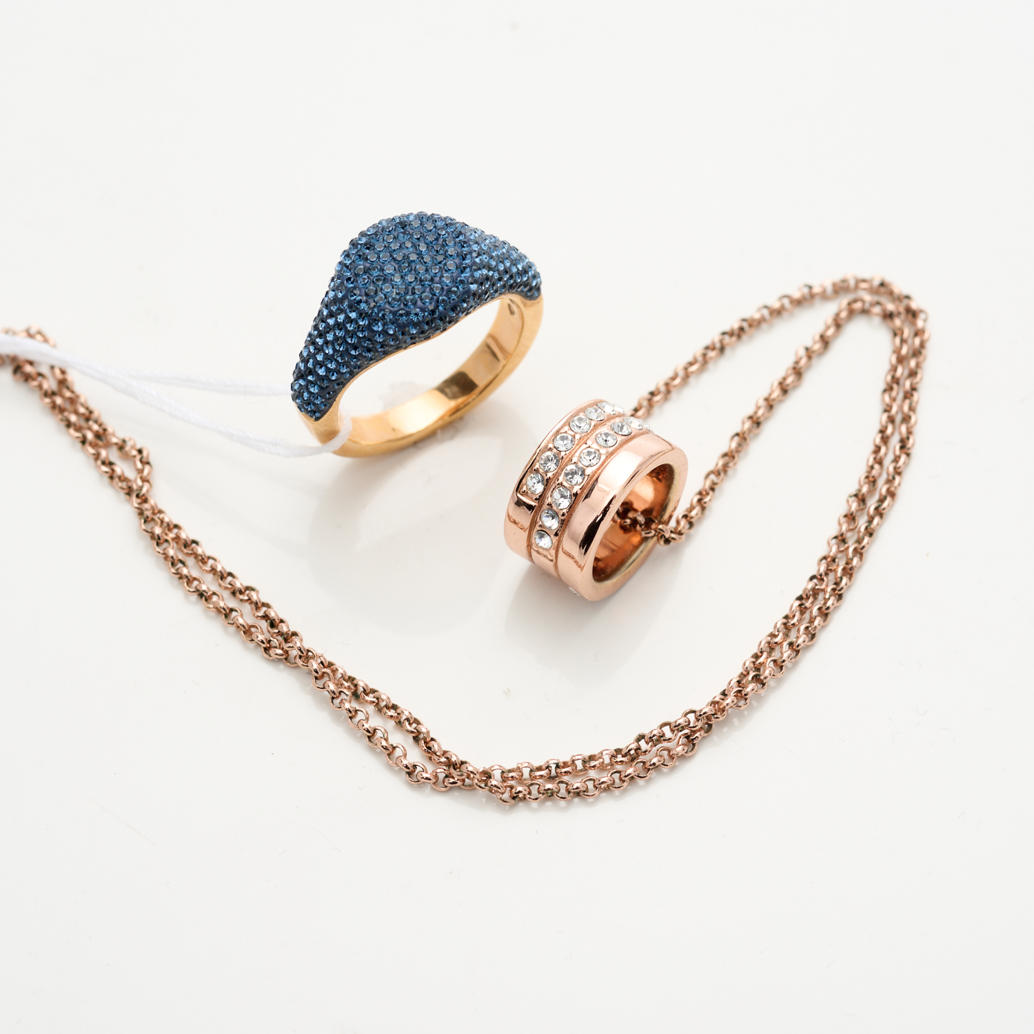 A SWAROVSKI PENDANT NECKLACE AND RING, RING SIZE L