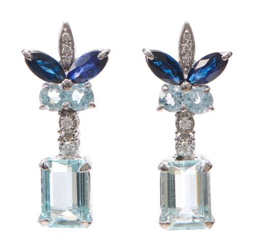 Sapphires and aquamarines of medium to light saturation and good brilliance