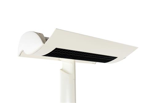 Cream pwder coated steel, metal and glass.