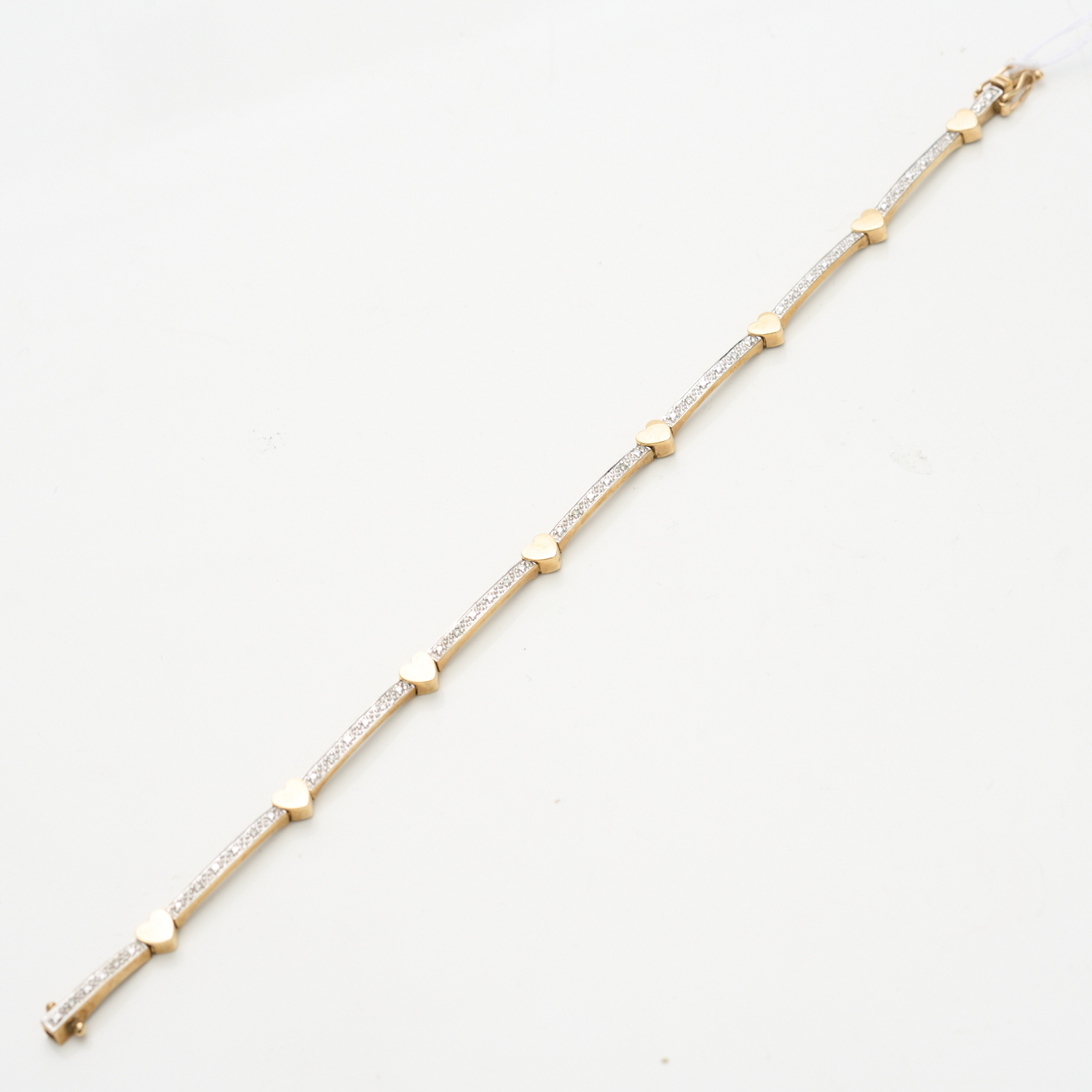 A DIAMOND SET HEART BRACELET IN 9CT GOLD, LENGTH APPROXIMATELY 180MM