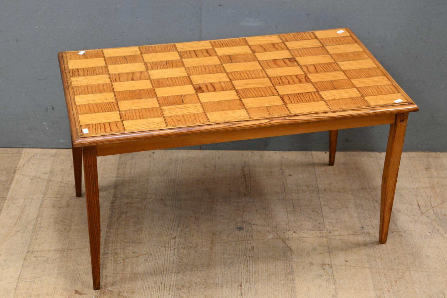 A TIMBER INLAID COFFEE TABLE (A/F) (48H x 89W x 53D CM) (LEONARD JOEL DELIVERY SIZE: MEDIUM)
