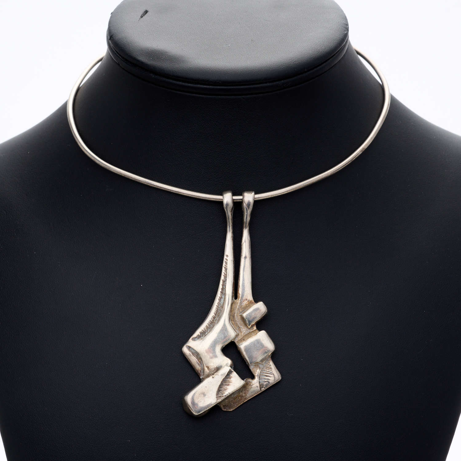 A VINTAGE SILVER ABSTRACT COLLAR NECKLACE, PENDANT LENGTH 75MM