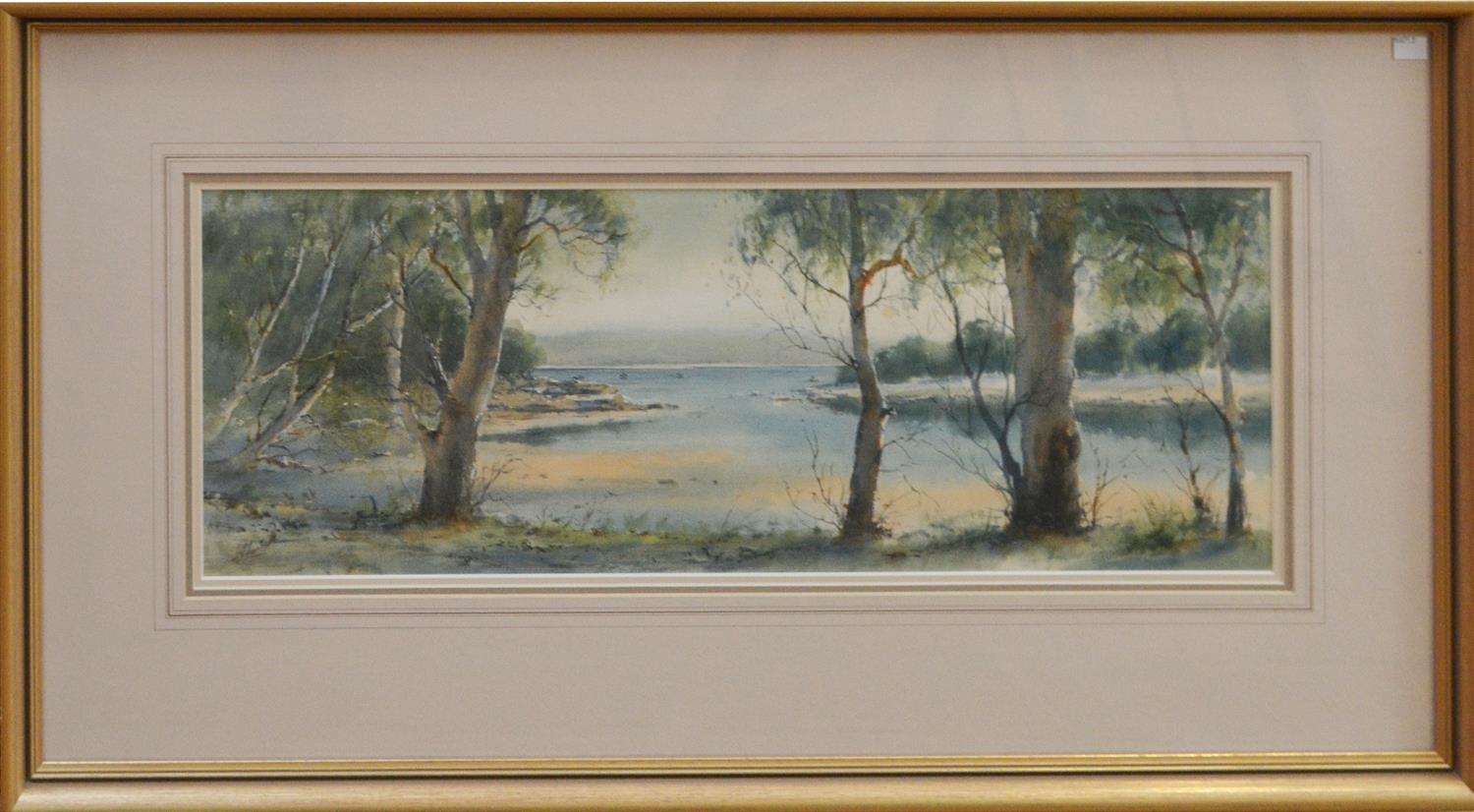 ERNEST TREMBATH, LOW TIDE NEAR EDEN, WATERCOLOUR, 29 X 76CM