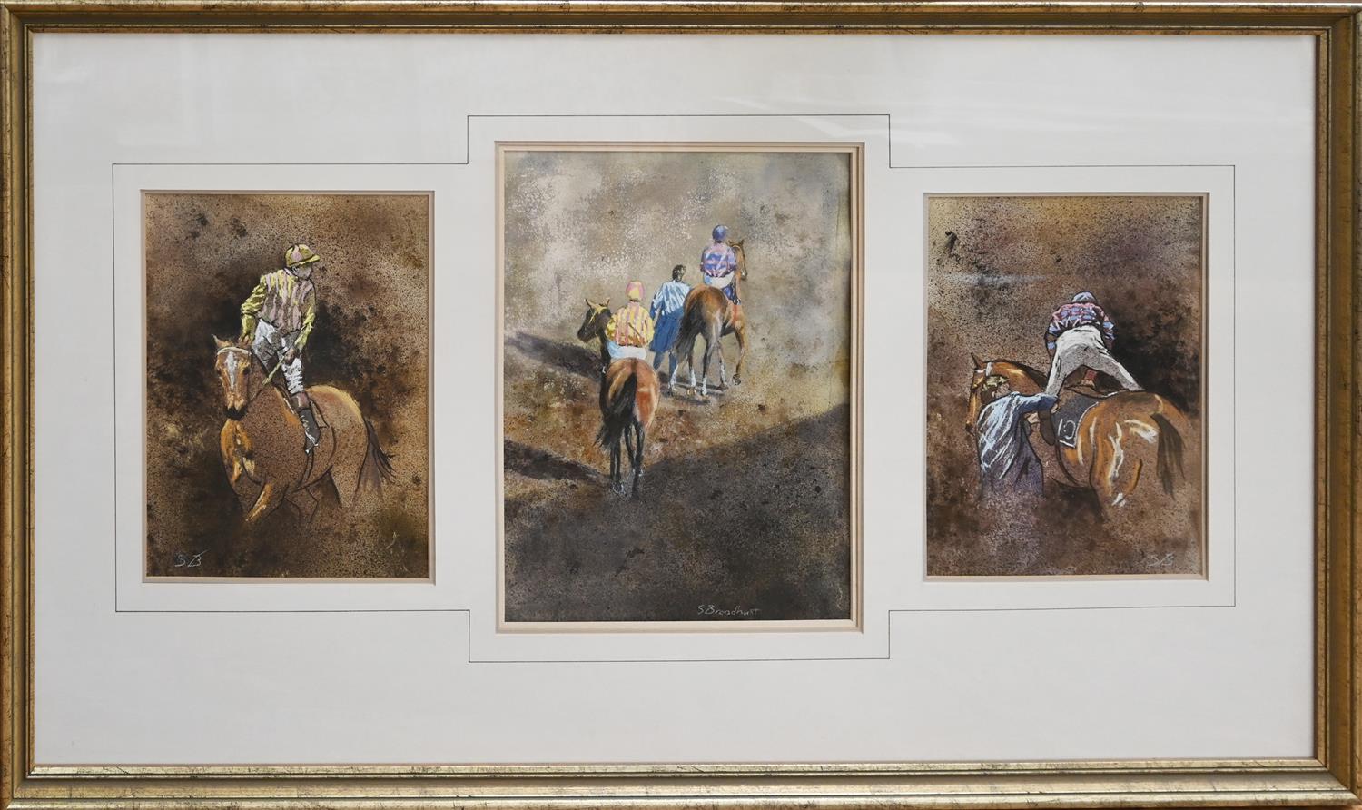 SAM BROADHURST, THE SPORT OF KINGS, WATERCOLOUR AND PASTEL, 49 X 106CM (TOTAL)