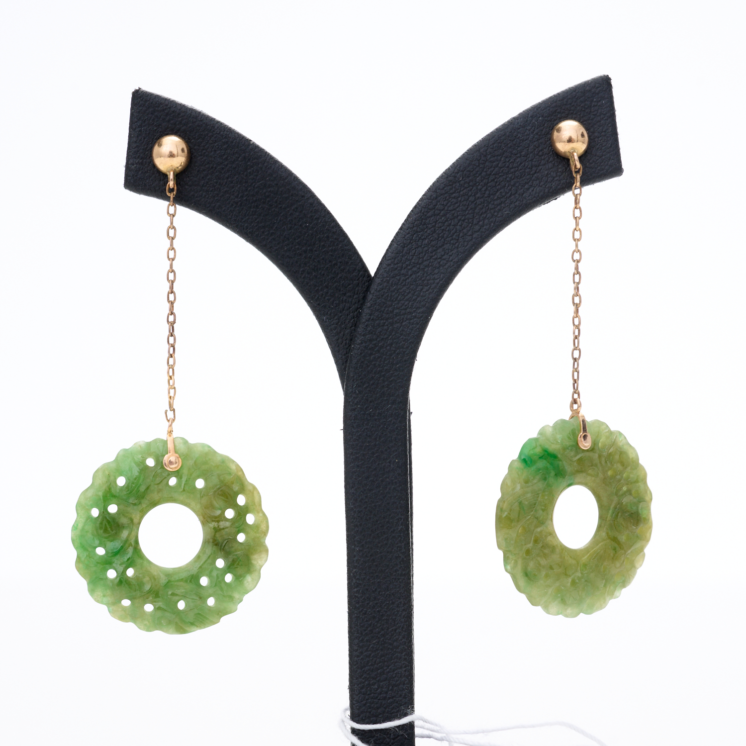 SERPENTINE OPENWORK DISC PENDANT EARRINGS TO 9CT GOLD STUD FITTINGS TO CABLE CHAIN