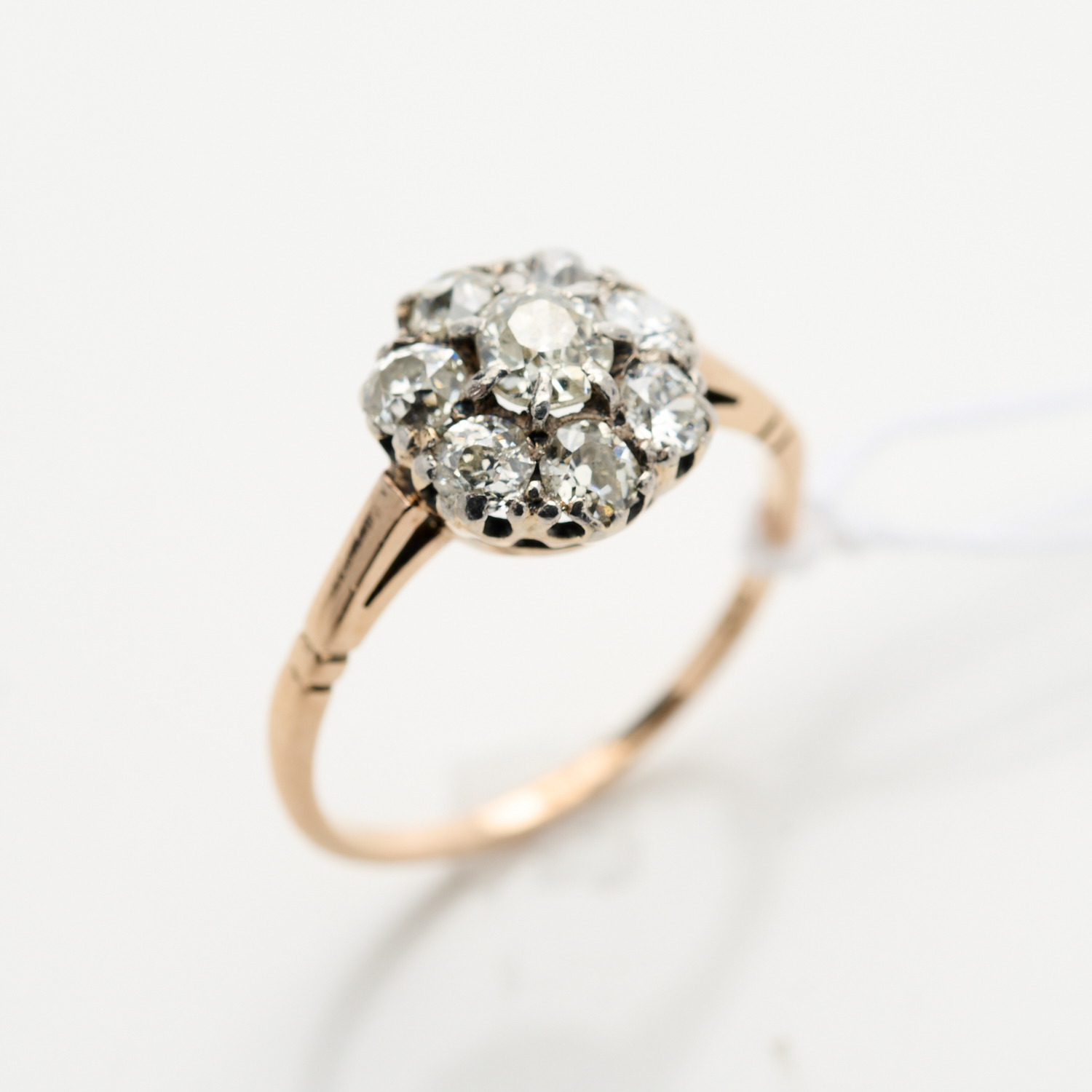 A DIAMOND CLUSTER RING IN 14CT GOLD, THE DIAMONDS WEIGHING APPROXIMATELY 0.75CT IN TOTAL, SIZE L, 1.81GMS