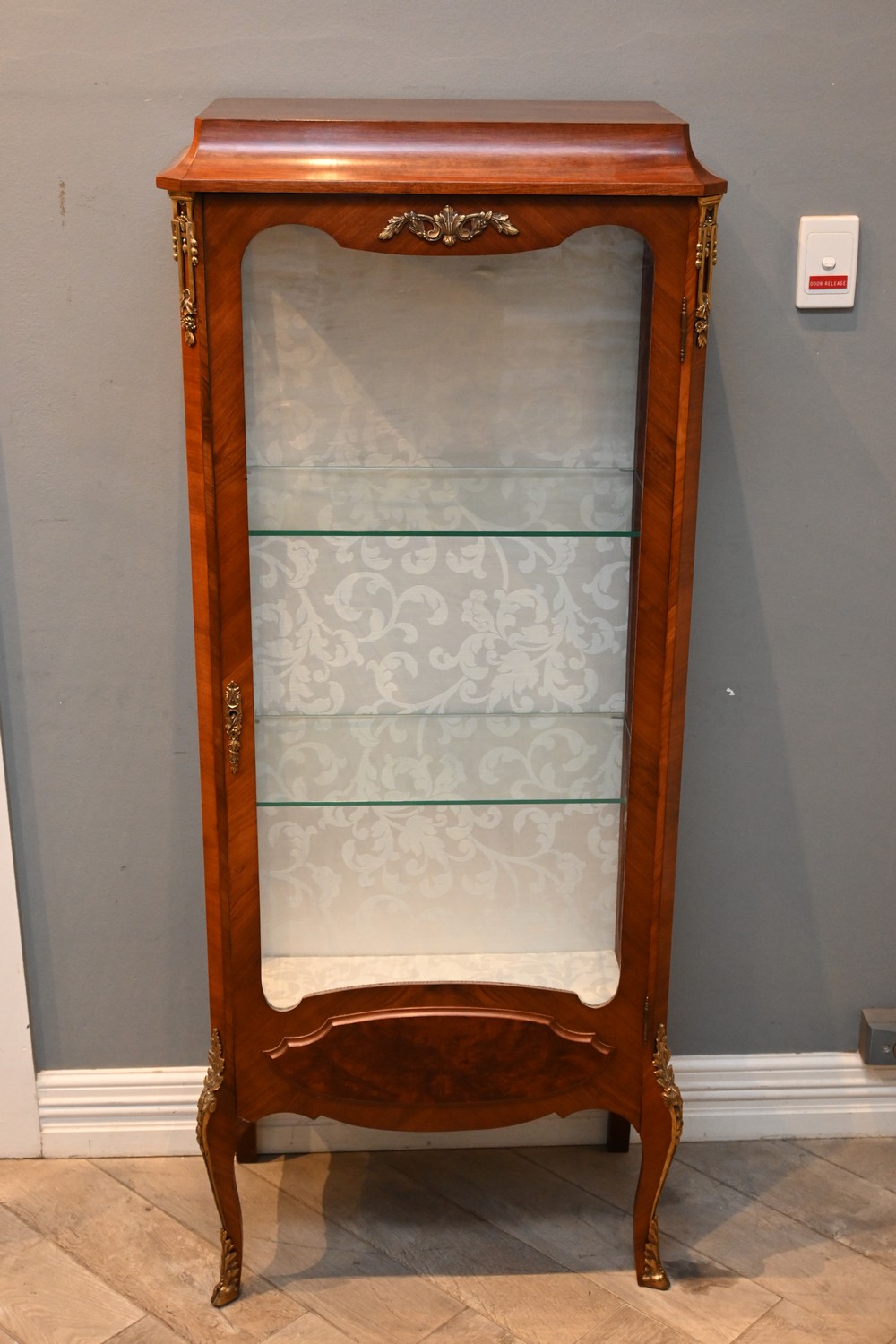 A LOUIS XV STYLE VITRINE WITH ORMOLU MOUNTS (A/F) (153H x 64W x 38D CM) (PLEASE NOTE THIS HEAVY ITEM MUST BE REMOVED BY CARRIERS AT THE CUSTOMER'S EXPENSE. LEONARD JOEL STAFF CANNOT ASSIST CARRYING THIS ITEM) (X-LARGE ITEM)