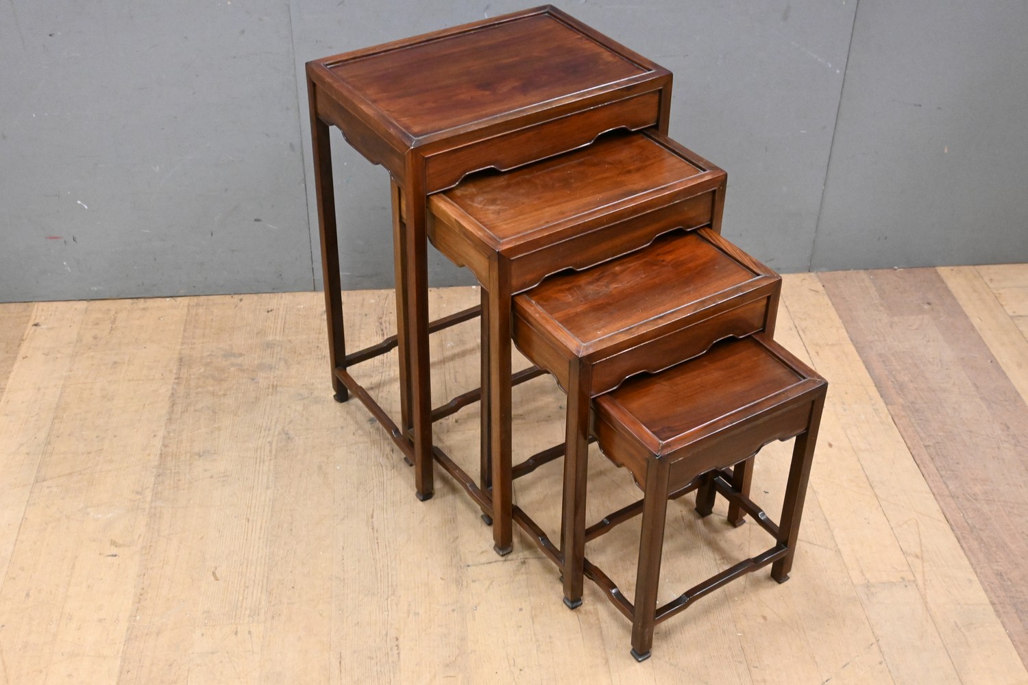 A NEST OF FOUR CHINESE SIDE TABLES (A/F) (LARGEST 70H x 49W x 35D CM) (LEONARD JOEL DELIVERY SIZE: MEDIUM)