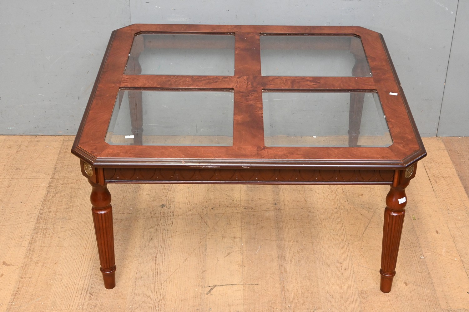 A GLASS TOPPED TOP TABLE (A/F) ( 45H X 88W X 90D CM) (LEONARD JOEL DELIVERY SIZE: LARGE)