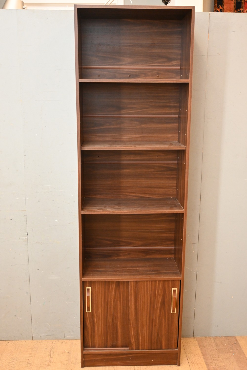 A CONTEMPORARY TALL BOOKCASE (A/F) (207H X 61W X 30D CM) (PLEASE NOTE THIS HEAVY ITEM MUST BE REMOVED BY CARRIERS AT THE CUSTOMER'S EXPENSE. LEONARD JOEL STAFF CANNOT ASSIST CARRYING THIS ITEM) (X-LARGE ITEM)
