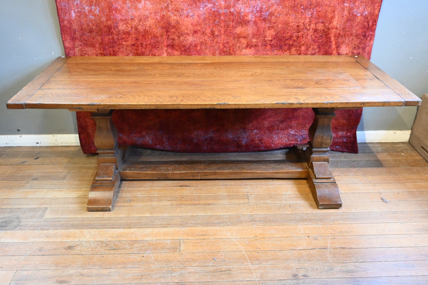 AN OAK FRENCH STYLE REFECTORY TABLE (78H x 230W x 91D CM) (PLEASE NOTE THIS HEAVY ITEM MUST BE REMOVED BY CARRIERS AT THE CUSTOMER'S EXPENSE. LEONARD JOEL STAFF CANNOT ASSIST CARRYING THIS ITEM) (X-LARGE ITEM)