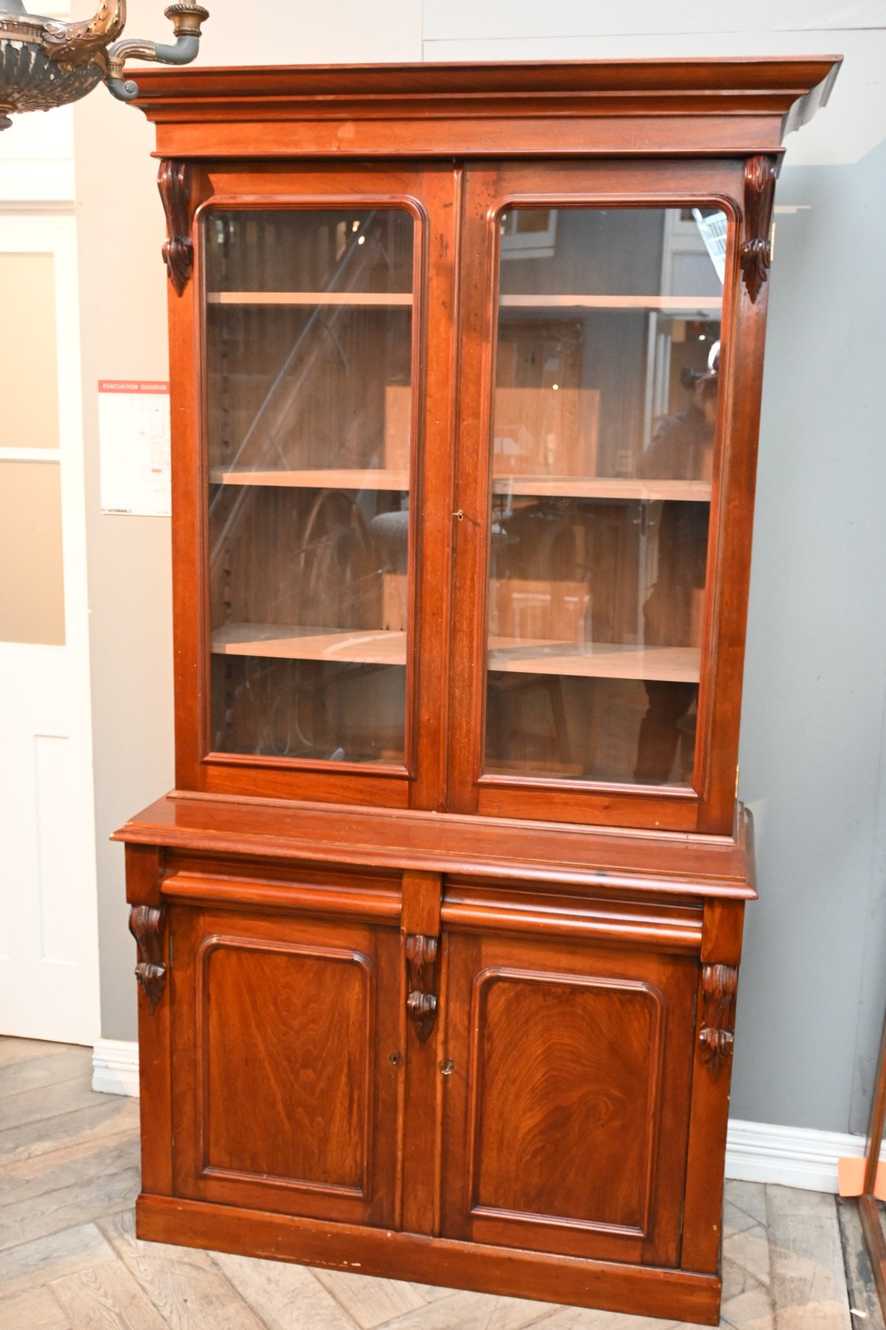 A VICTORIAN GLASS FRONTED DOUBLE BODIED BOOKCASE (A/F) (230H x 130W x 50D CM) (PLEASE NOTE THIS HEAVY ITEM MUST BE REMOVED BY CARRIERS AT THE CUSTOMER'S EXPENSE. LEONARD JOEL STAFF CANNOT ASSIST CARRYING THIS ITEM) (X-LARGE ITEM)