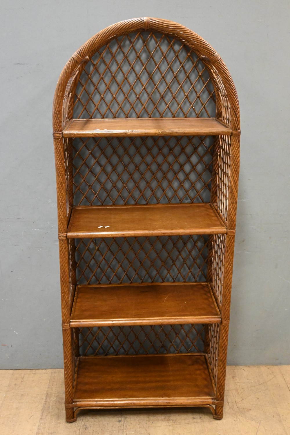 A CANE FOUR TIER SHELF (A/F) (184H x 77W x 45D CM) (LEONARD JOEL DELIVERY SIZE: LARGE)