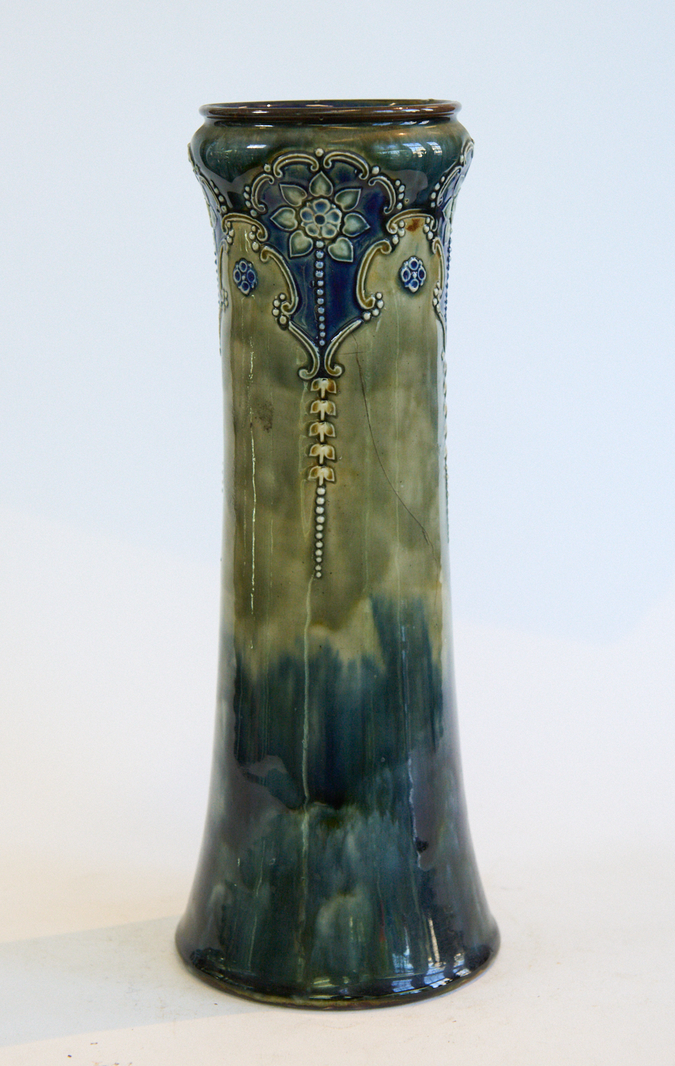 A ROYAL DOULTON STONEWARE VASE (A/F) H. 33CM, LEONARD JOEL LOCAL DELIVERY SIZE: SMALL