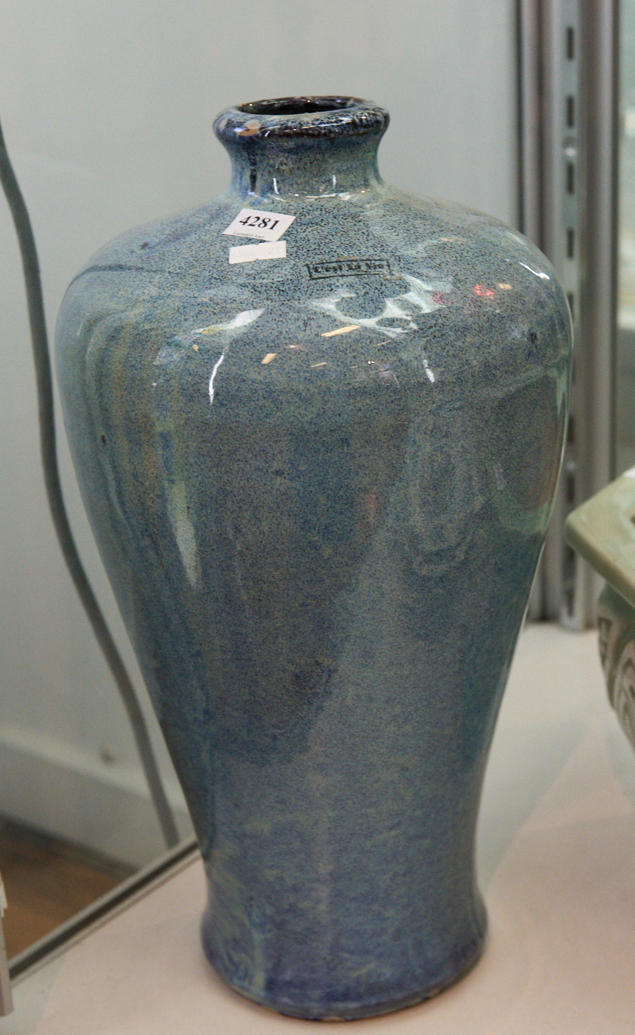 A BLUE GLAZE CHINESE STYLE VASE H. 44CM, LEONARD JOEL LOCAL DELIVERY SIZE: MEDIUM
