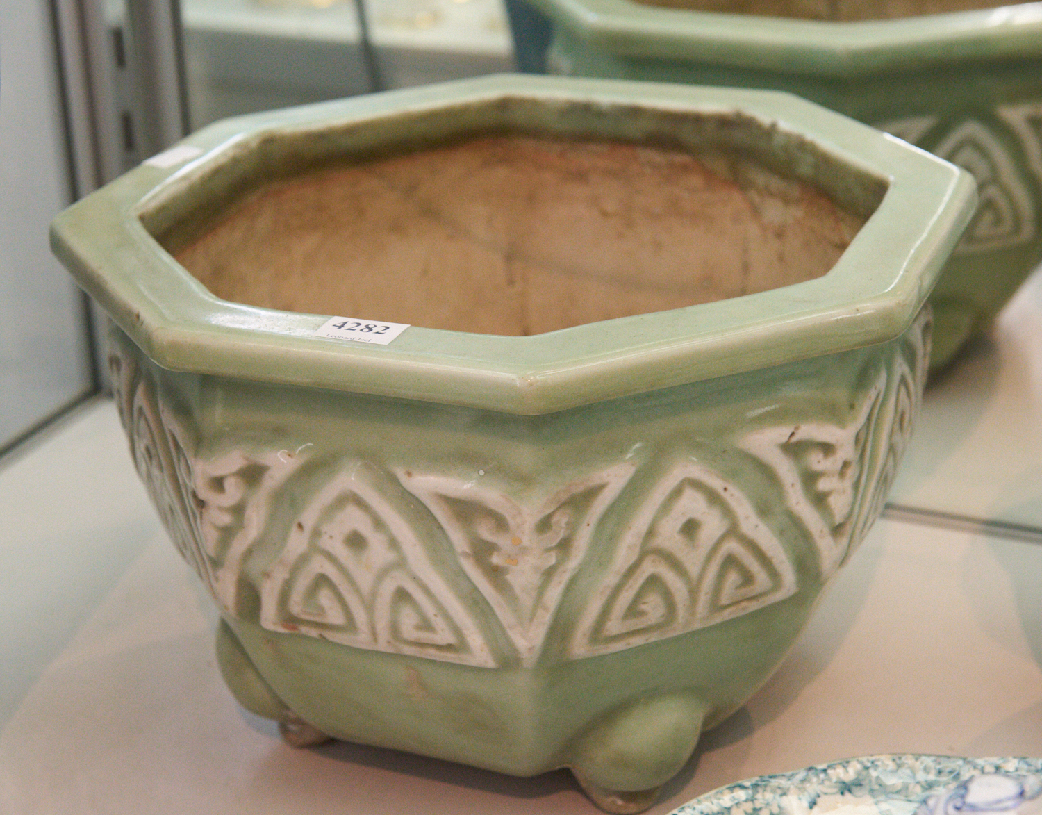 A CERAMIC HEXAGONAL FORM PLANT POT W. 30CM H. 20CM, LEONARD JOEL LOCAL DELIVERY SIZE: MEDIUM