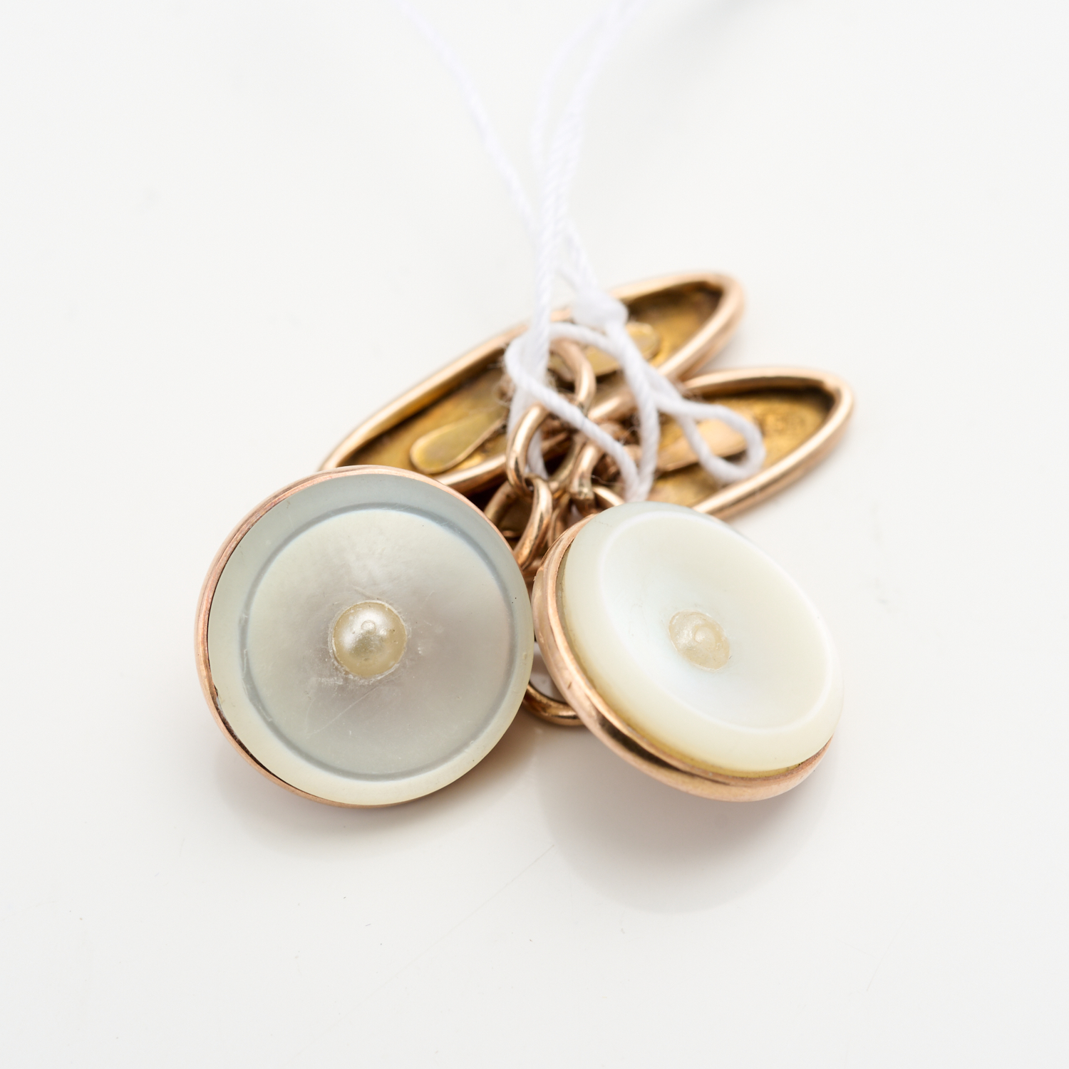 A PAIR OF EDWARDIAN MOTHER OF PEARL SET STUDS IN 9CT GOLD