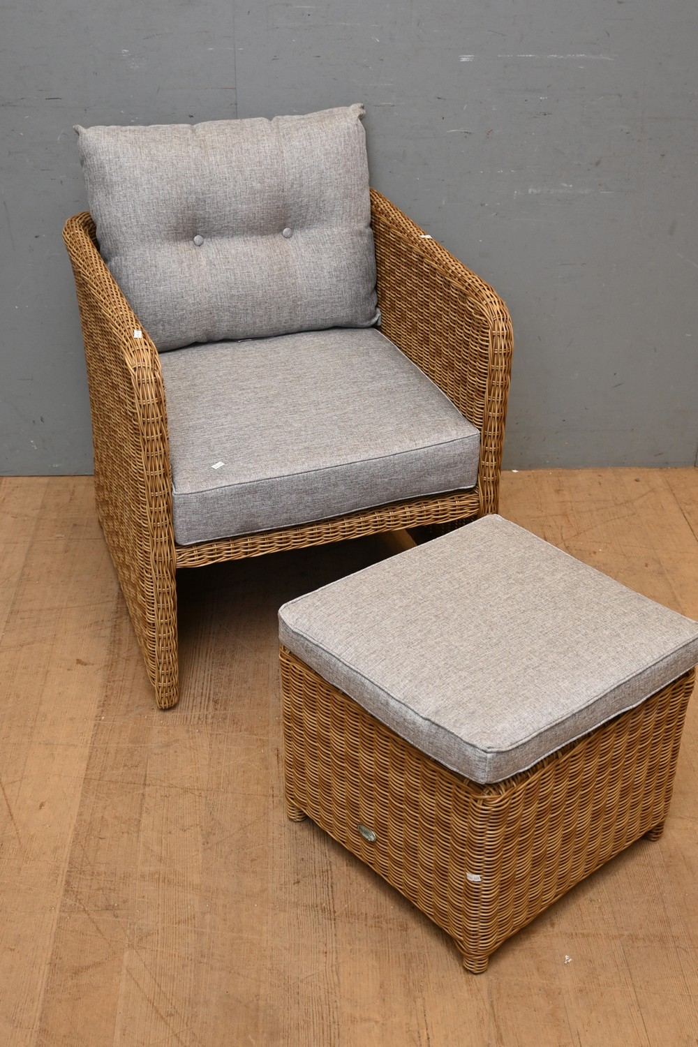 A CANE ARMCHAIR WITH A MATCHING FOOTSTOOL ( 91H X 71W X 76D CM) (LEONARD JOEL DELIVERY SIZE: LARGE)