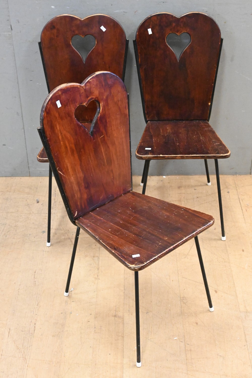 THREE 1960S PLYWOOD HEART SHAPED CHAIRS (84H x 39W x 47D CM) (LEONARD JOEL DELIVERY SIZE: LARGE)