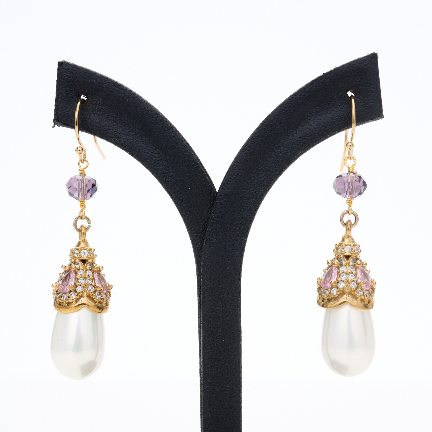 A PAIR OF FAUX PEARL EARRINGS IN SILVER GILT