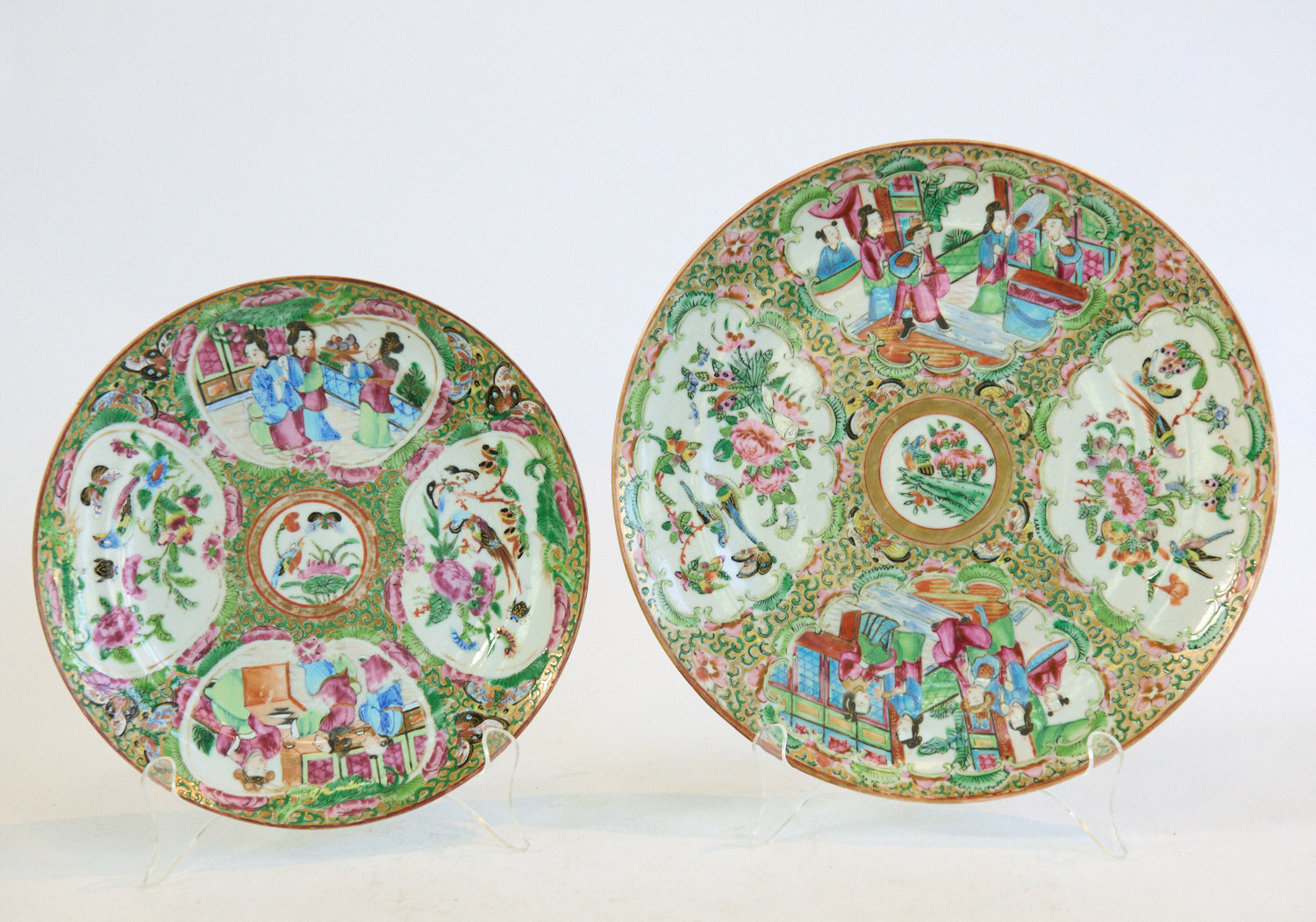 TWO CHINESE FAMILLE ROSE PORCELAIN PLATES c.1820 DIA.24CM (LARGEST), LEONARD JOEL LOCAL DELIVERY SIZE: SMALL