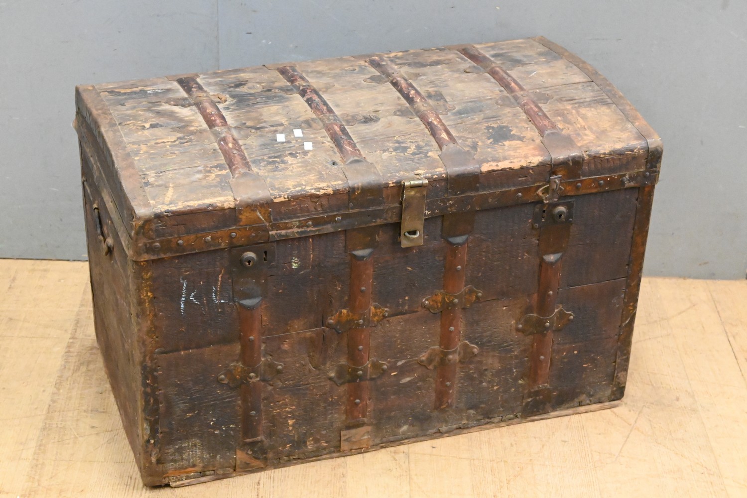 A RUSTIC TIMBER CHEST (A/F) (57H x 89W x 49D CM) (LEONARD JOEL DELIVERY SIZE: LARGE)
