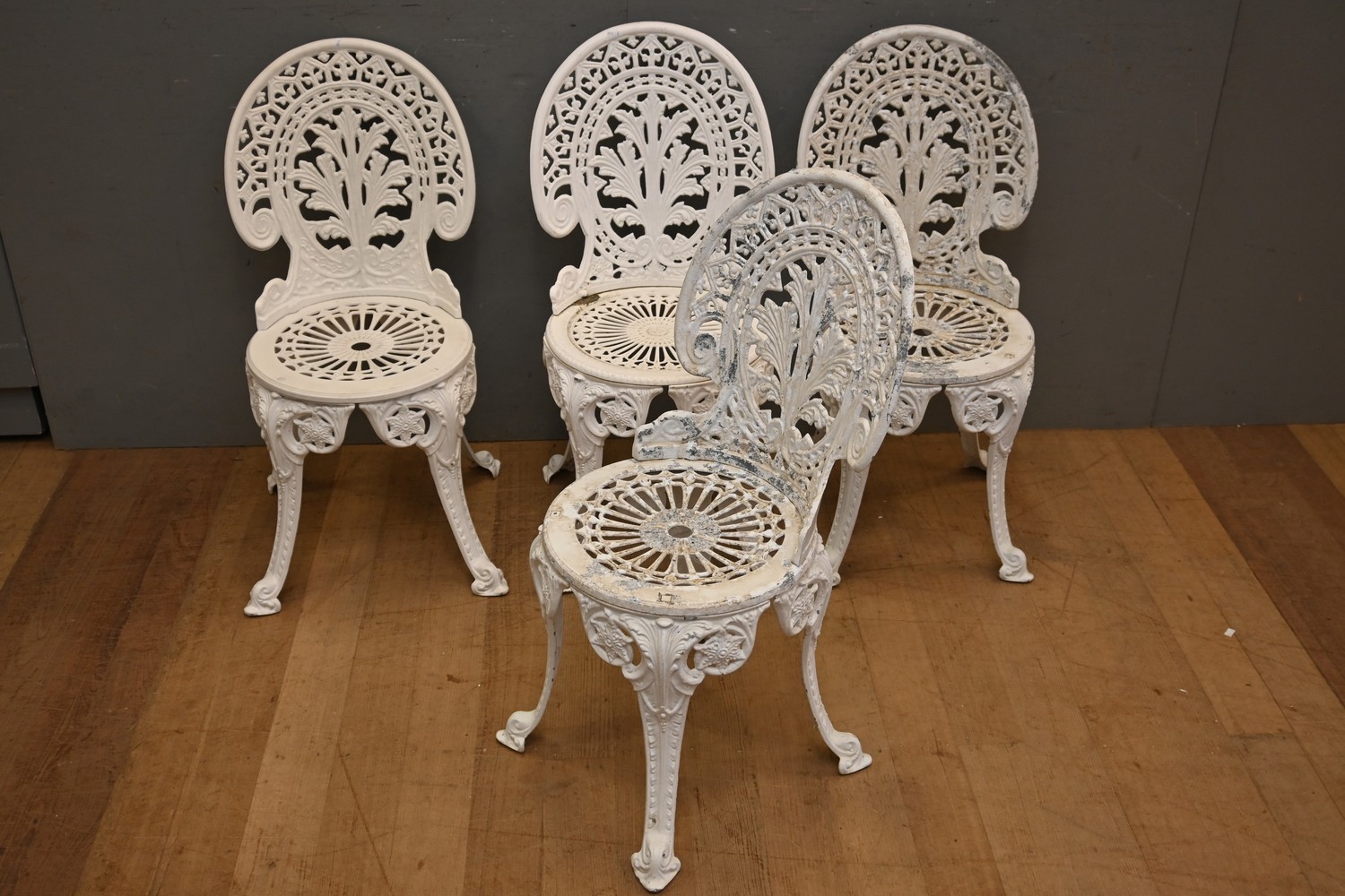 A SET OF FOUR METAL OUTDOOR CHAIRS (A/F) (85H x 43W x 48D CM) (LEONARD JOEL DELIVERY SIZE: LARGE)