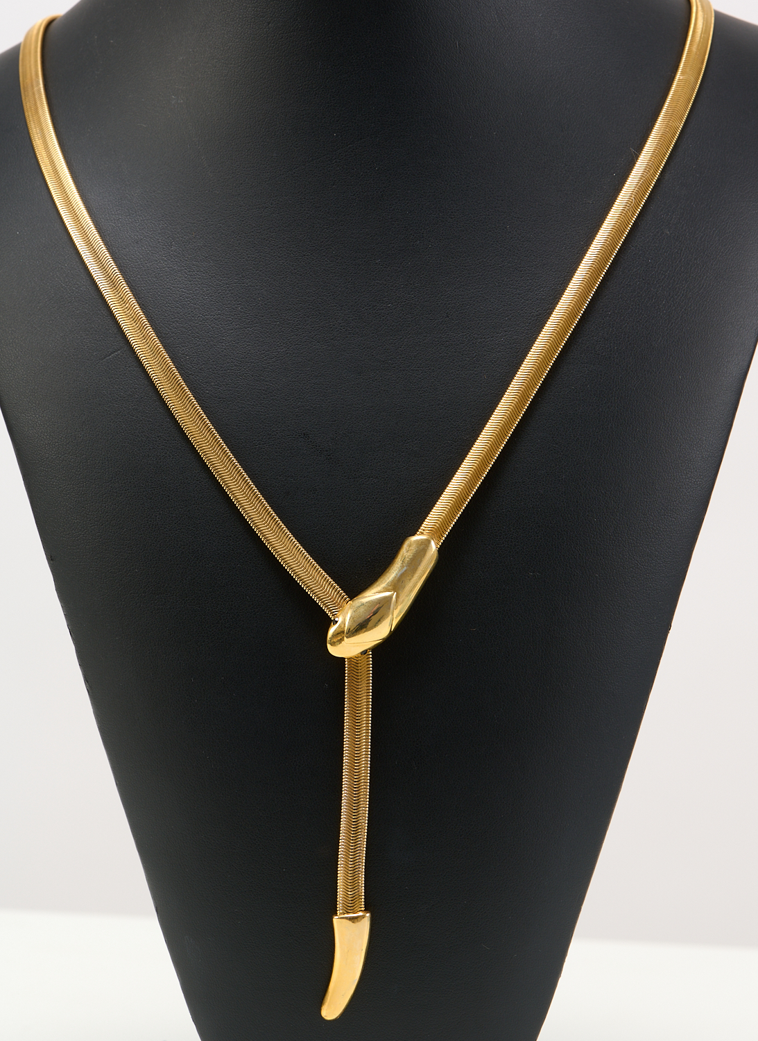 A SERPENT STYLE NECKLACE IN GOLD TONE METAL, LENGTH APPROXIMATELY 750MM
