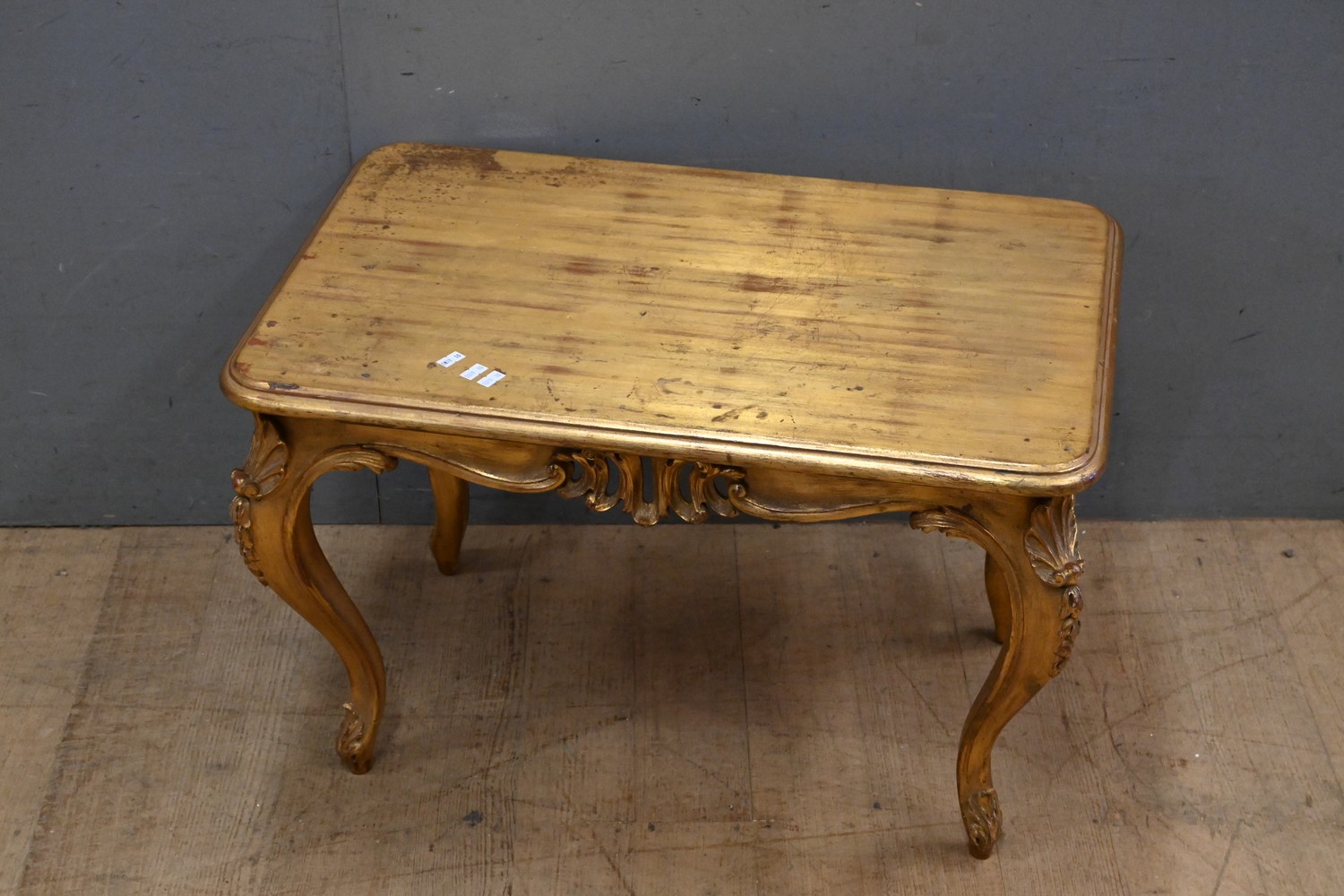 A ITALIAN LOUIS XV STYLE GILDED AND CARVED TIMBER COFFEE TABLE ( 45H X 42W X 46D CM) (LEONARD JOEL DELIVERY SIZE: LARGE)