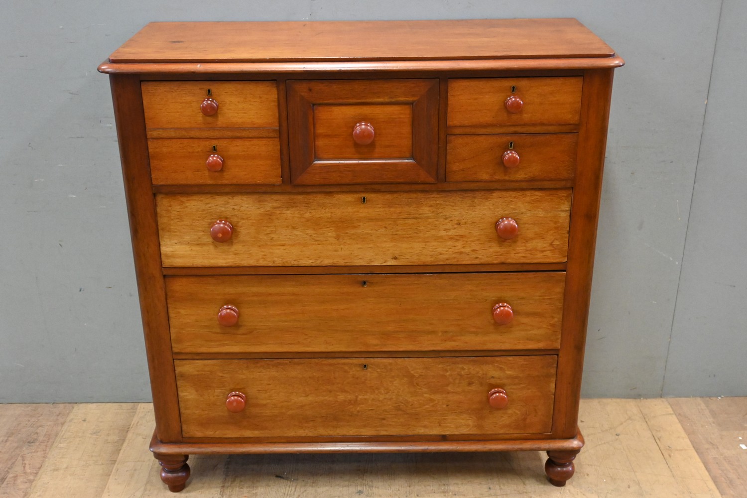 A 19TH CENTURY AUSTRALIAN CEDAR SEVEN DRAWER CHEST (122H x 117W x 48D CM) (PLEASE NOTE THIS HEAVY ITEM MUST BE REMOVED BY CARRIERS AT THE CUSTOMER'S EXPENSE. LEONARD JOEL STAFF CANNOT ASSIST CARRYING THIS ITEM) (X-LARGE ITEM)
