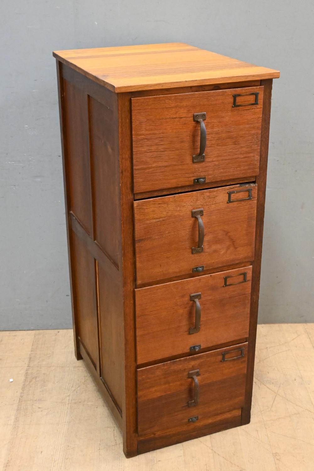 AN AUSTRALIAN OAK FOOLSCAP FOUR DRAWER FILING CABINET (133H x 53W x 72D CM) (PLEASE NOTE THIS HEAVY ITEM MUST BE REMOVED BY CARRIERS AT THE CUSTOMER'S EXPENSE. LEONARD JOEL STAFF CANNOT ASSIST CARRYING THIS ITEM) (X-LARGE ITEM)
