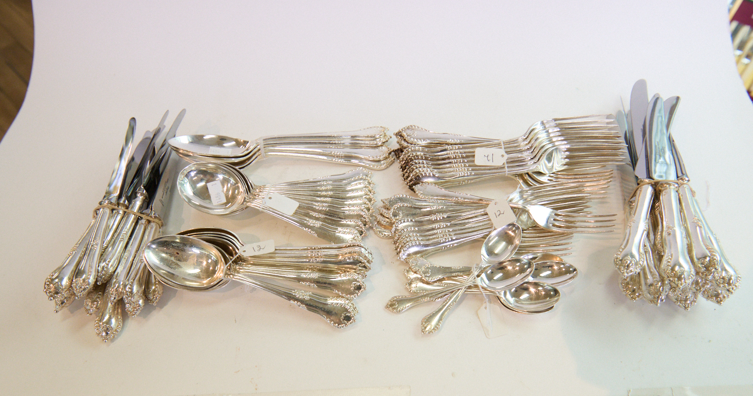 A SILVERPLATED KINGS PATTERN CUTLERY SET FOR EIGHT PLUS EXTRAS, LEONARD JOEL LOCAL DELIVERY SIZE: SMALL