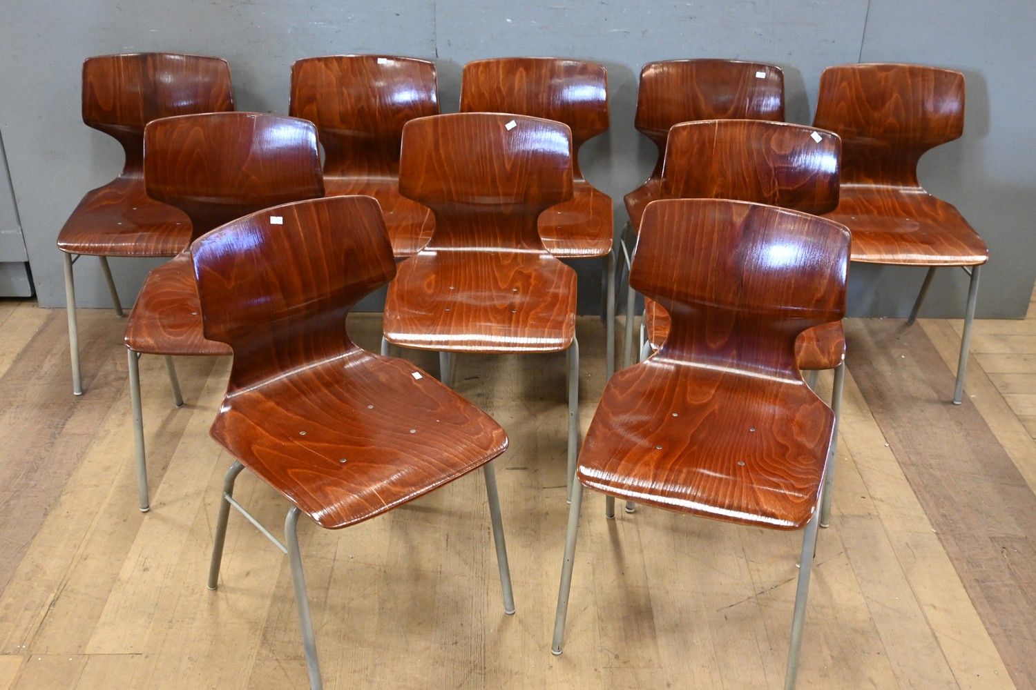 A SET OF TEN CONTEMPORARY PLYWOOD CHAIRS ( 77H X 42W X 46D CM) (LEONARD JOEL DELIVERY SIZE: LARGE)
