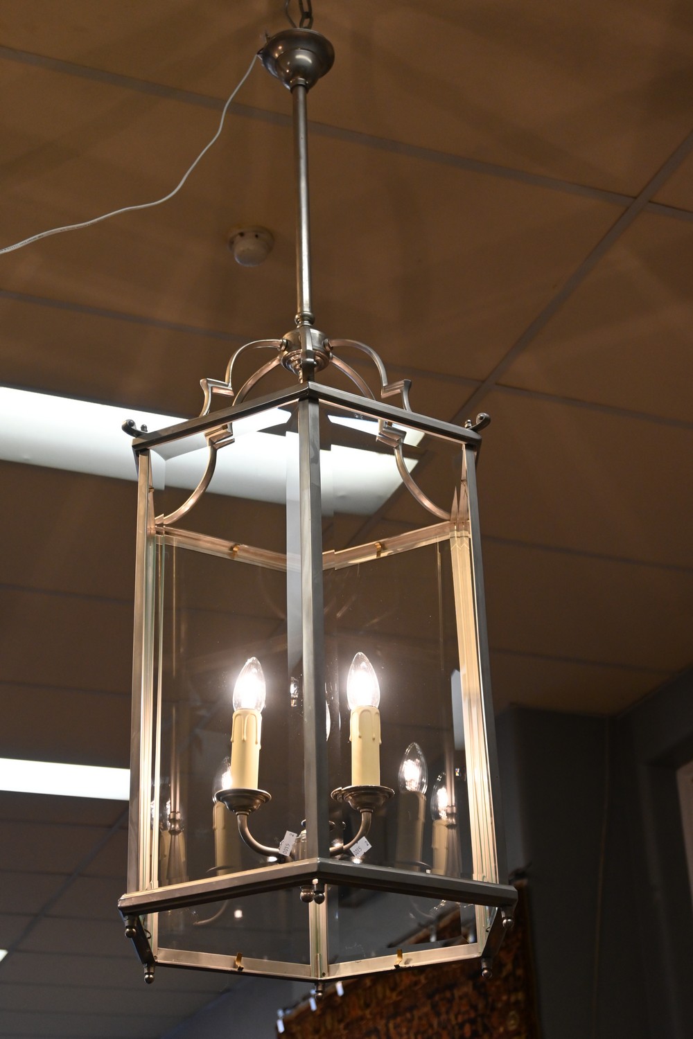 A HEXAGONAL NICKEL STEEL LIGHT FITTING (120H x 46D CM) (LEONARD JOEL DELIVERY SIZE: LARGE)