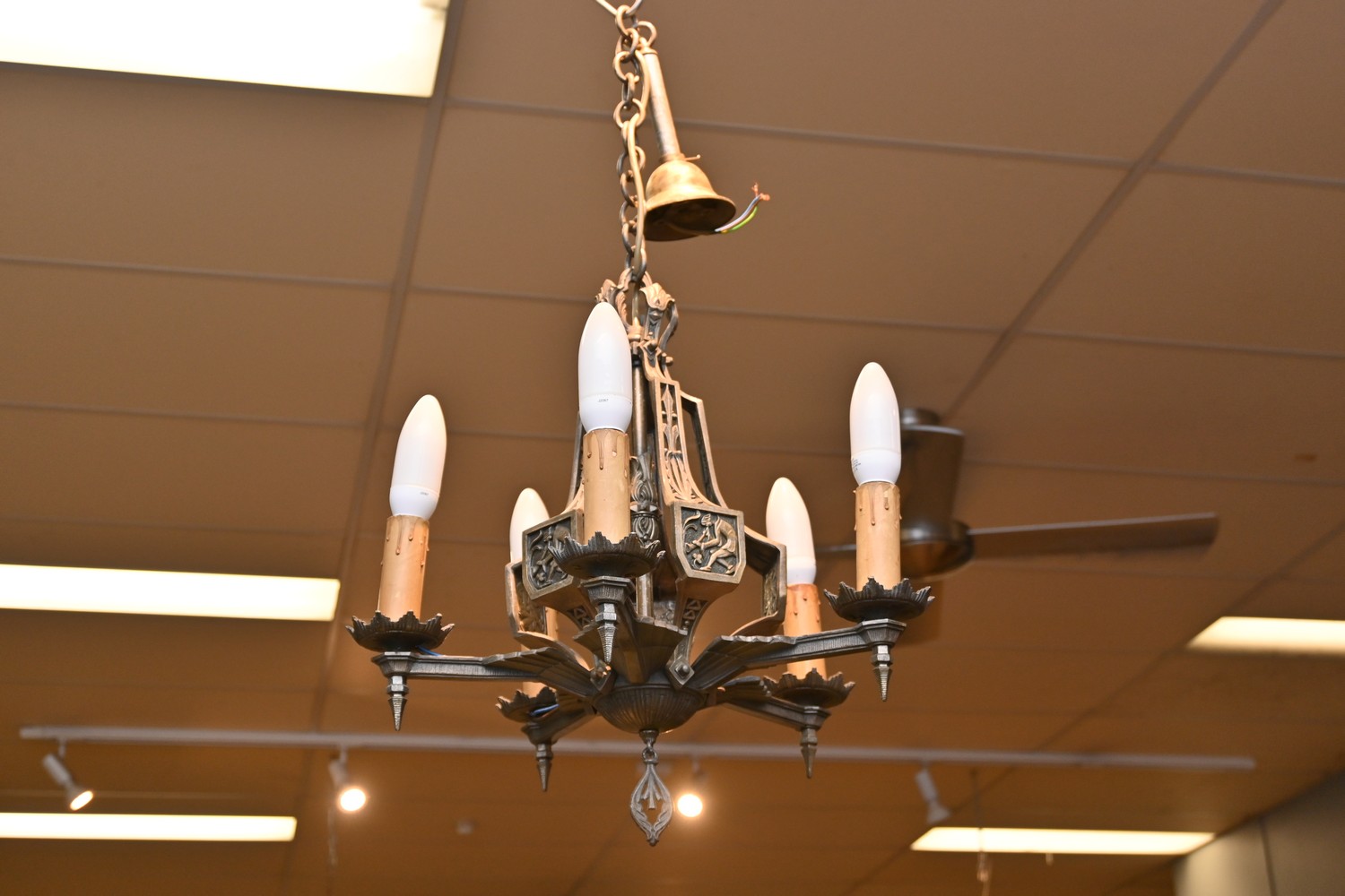 A MID CENTURY FIVE BRANCH CHANDELIER (70H x 48D CM) (LEONARD JOEL DELIVERY SIZE: LARGE)