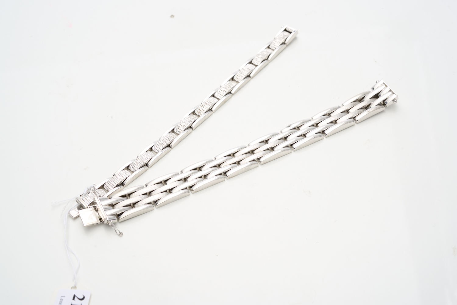 TWO TEXTURED FANCY LINK BRACELETS IN CONTINENTAL SILVER, THE THICKEST BRACELET MEASURING APPROXIMATELY 190MM, AND THE THINNEST APPROXIMATELY 185MM