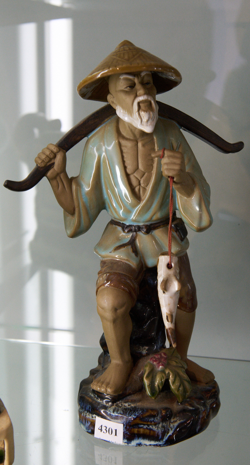 A CHINESE FIGURE OF A FISHERMAN H.33CM, LEONARD JOEL LOCAL DELIVERY SIZE: SMALL